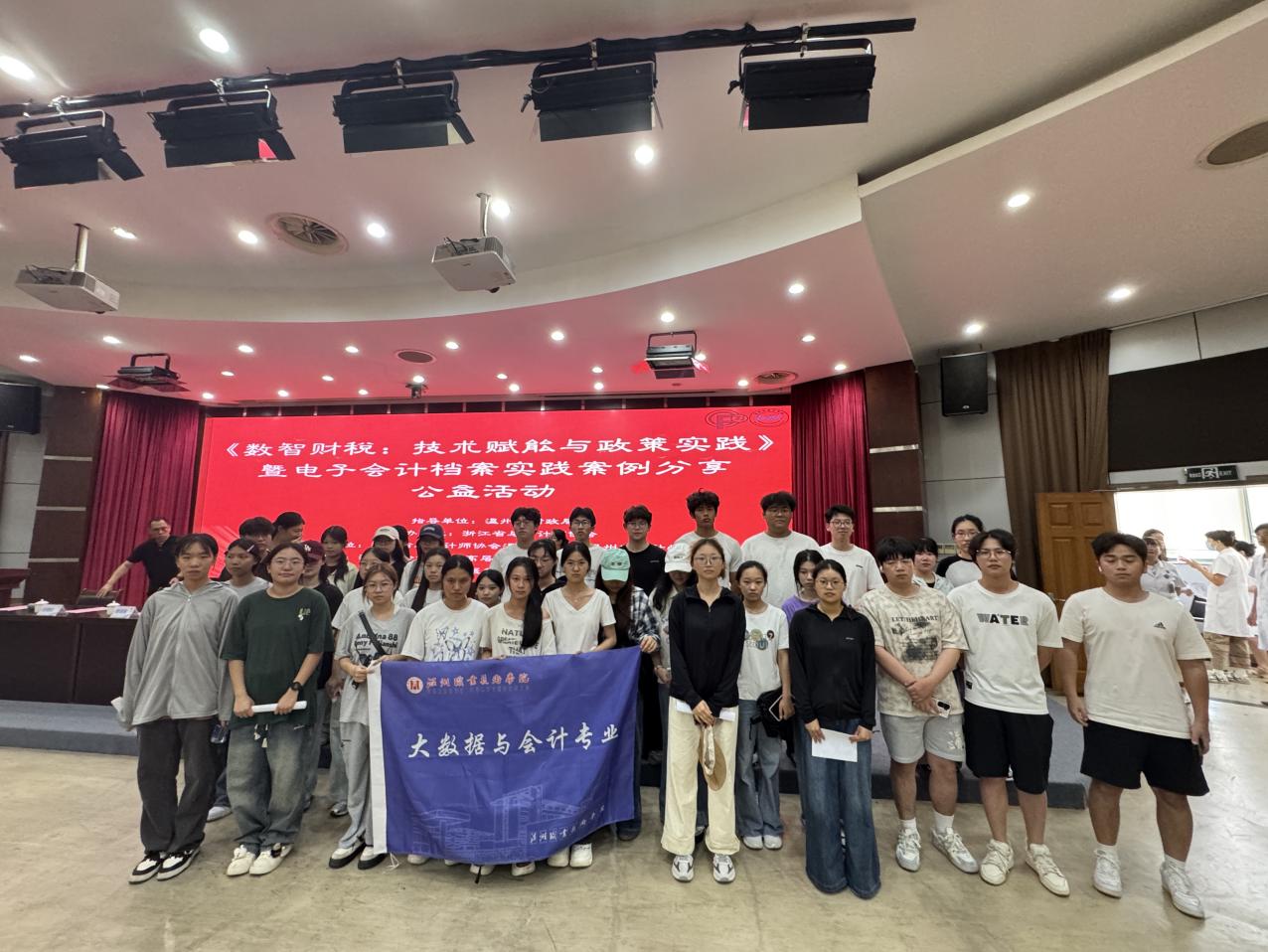 本网讯(大数据与会计教研室通讯员 陈双双)2025年10月11日,由浙江省总会计师协会主办、温州工作委员会与温州市会计学会联合承办的《数智财税:技术赋能与政策实践》暨电子会计档案实践案例分享公益活动在温州医科大学茶山校区成功举办。我院大数据与会计专业师生一行40余人积极参与本次高端行业培训,与来自全市的200余名财会精英共话数字化转型,赋能专业成长。