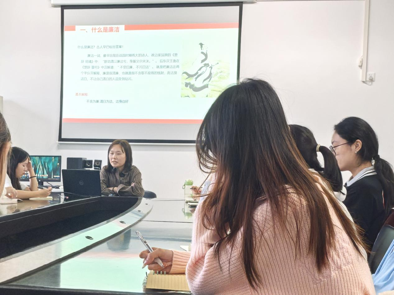 10月20日,数字经贸学院党总支副书记夏真老师以《坚定理想信念,严守政治底线》为题,结合典型案例讲解廉洁自律的重要性,强调学员要坚定理想信念,树立正确“三观”,绷紧廉洁之弦,做到不攀比、不作弊;同时告诫大家为人要践行“三会”(会说话、会做事、会为人)“五慎”(慎欲、慎独、慎微、慎初、慎友),以清正作风投入学习工作。