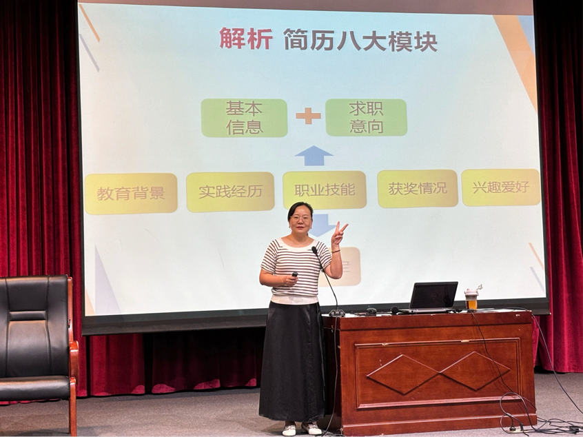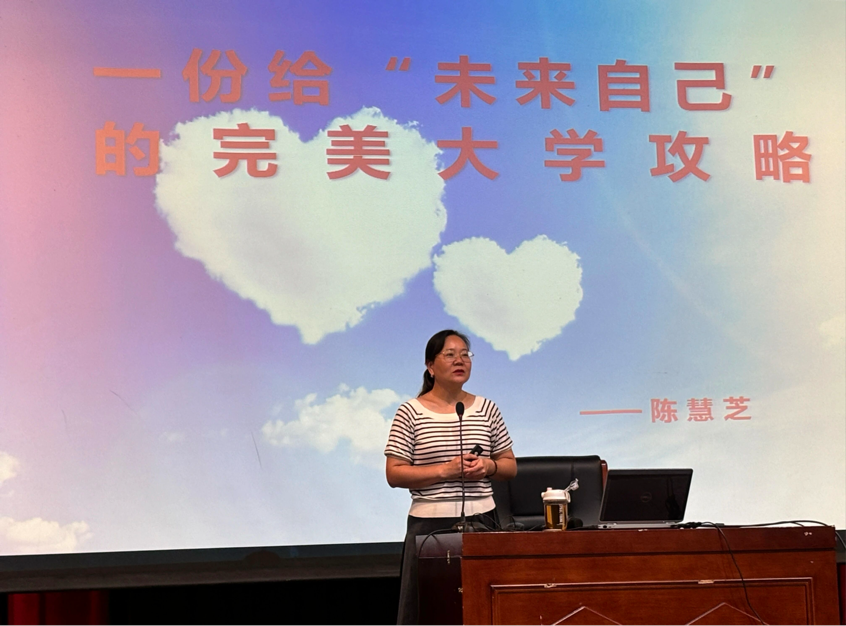 讲座以“赢在习惯”为开篇,陈慧芝老师开篇抛出“大学毕业后我可以找到什么样的工作由什么决定?”的核心问题,摒弃空泛说教,直接聚焦求职关键——简历。她强调,优秀简历绝非毕业前临时拼凑,而是三年大学时光持续打磨的成果,引导新生从入学第一天就树立“为简历积累”的意识。现场新生专注聆听,不时与同学交流感悟,眼神中充满对未来大学规划的期待。