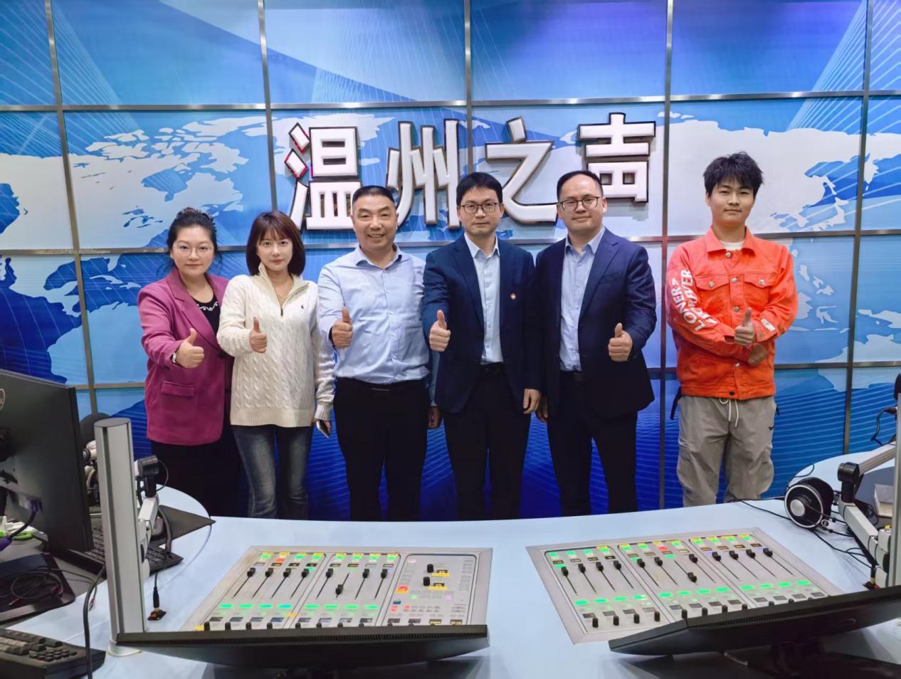 (市场营销教研室通讯员 林冠群)2025年12月3日,温州职业技术学院数字经贸学院一行师生受邀参加温州电台《教育面对面》节目,专题分享本校与森马集团联合打造的贝迪家直播订单班,探讨破解职业教育人才培养"卡脖子"问题的创新实践。其中嘉宾包括数字经贸学院院长易淼清,森马集团森马集团副总裁赵小波和瓯海职业中专副校长周强,森马倍迪家直播基地的老师及学生。
