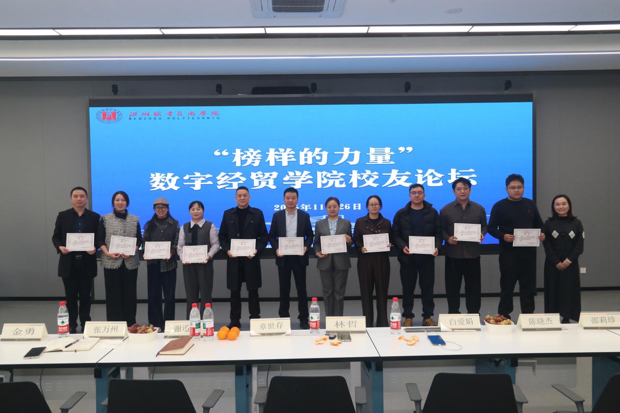 汇聚校友智慧,传承育人薪火。11月26日,数字经贸学院“榜样的力量”校友论坛暨职业导师颁发仪式在学院隆重举行。优秀校友们重返母校,与在校师生齐聚一堂,通过经验分享、思维碰撞与趣味互动,共同描绘了一幅校企协同、共育英才的生动画面。